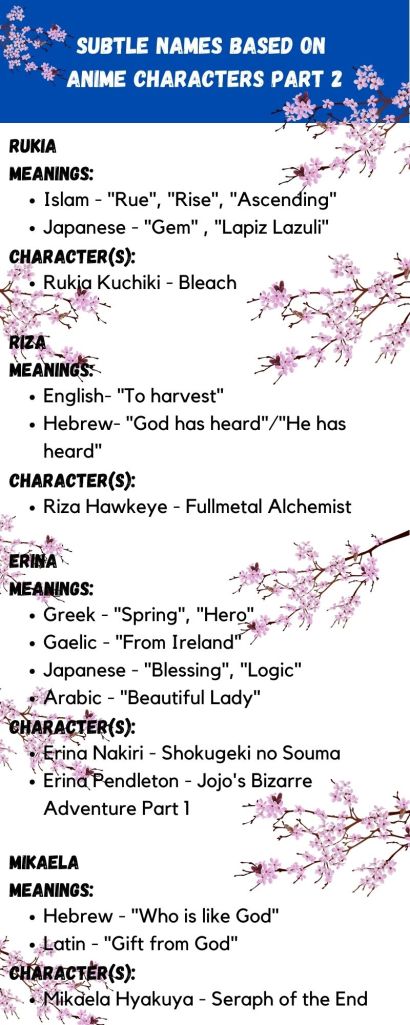 Here are some character name ideas based on anime characters. These are names that I think are subtle enough that they can be used on non-Japanese characters without a reader realizing that they’re named after an anime character. Some are western names, and others are Japanese but wouldn’t raise too many eyebrows outside of Japanese media.