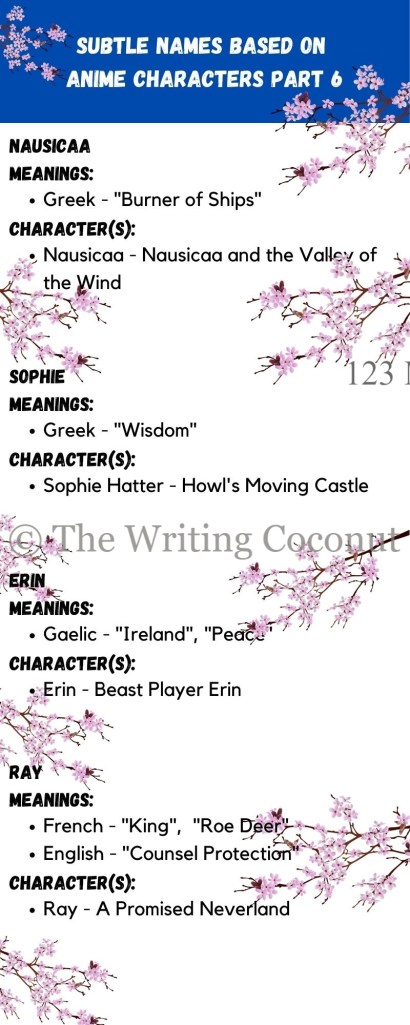 Here are some character name ideas based on anime characters. These are names that I think are subtle enough that they can be used on non-Japanese characters without a reader realizing that they’re named after an anime character. Some are western names, and others are Japanese but wouldn’t raise too many eyebrows outside of Japanese media.